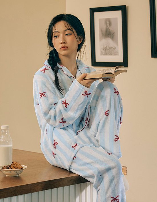 [도씨] 플러피 보니 긴팔 커플 수면 잠옷 세트