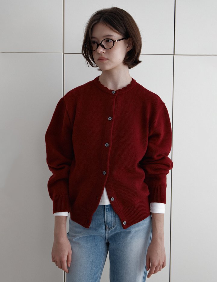 [라비두] 웨이브 캐시미어 가디건 (버건디) (버건디)