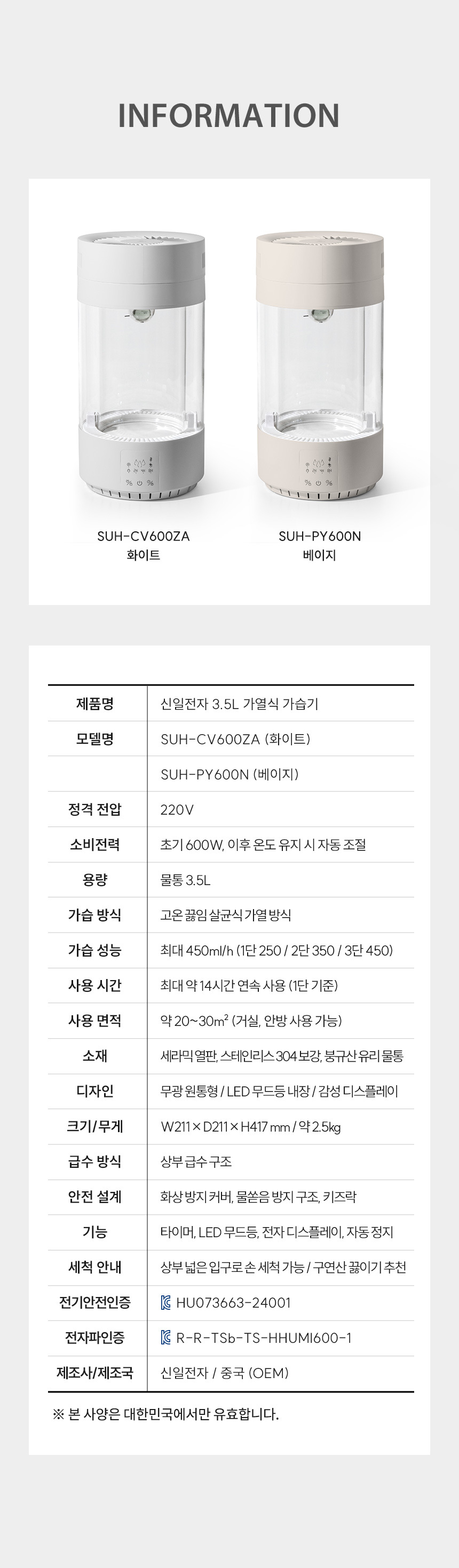 [신일] 26 NEW 가열식 아기 가습기 대용량 신생아 유리 물멍 가열 온열 따듯한