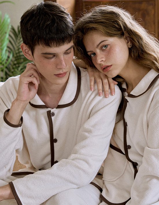 [도씨] 2PACK/플러피 퓨어 긴팔 커플 수면 잠옷 세트