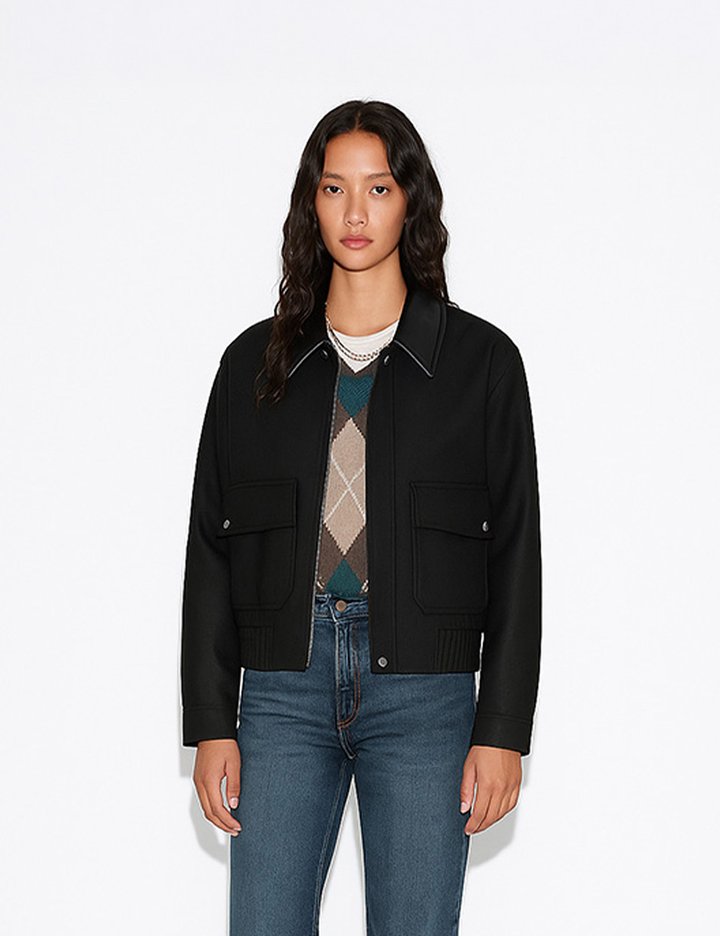 [로르서울]레더 카라 집업 블루종_FVJP250902