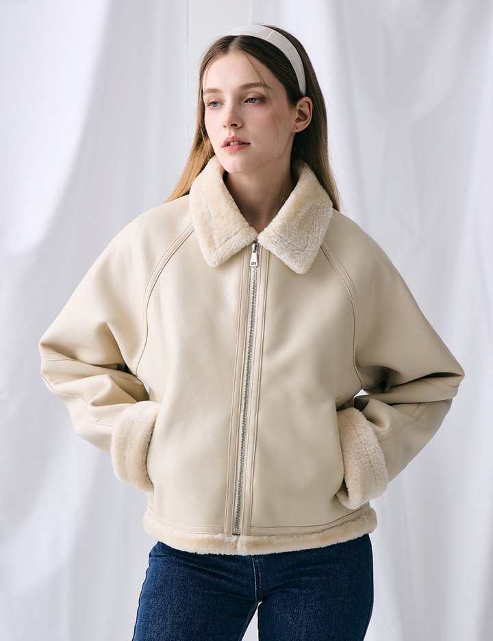 [로르서울]미니멀 퍼 바인딩 카라 무스탕 자켓_KSJK250702