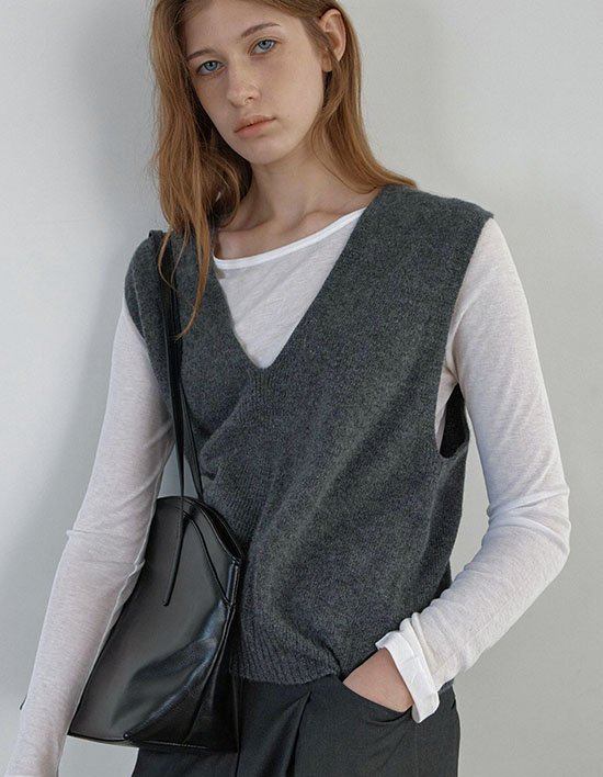 [드팜므] 울 홀가먼트 니트 베스트 그레이