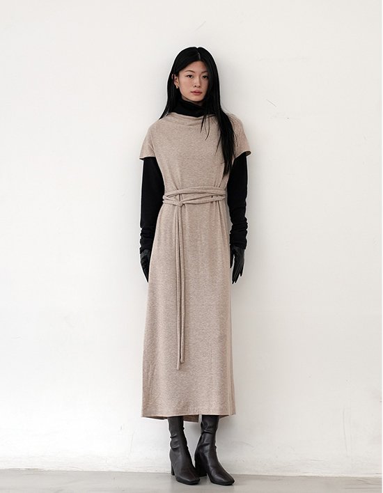 [드팜므] 드레이프 넥 니트 롱드레스 베이지
