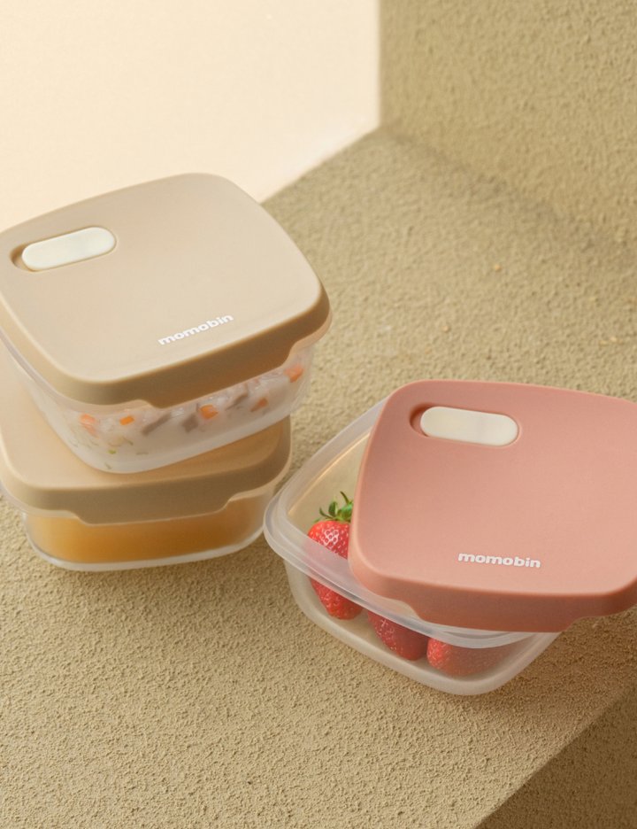 [모모빈] 실리콘 이중 밀폐 이유식 보관 용기 370ml 2입 소분 이유식용기