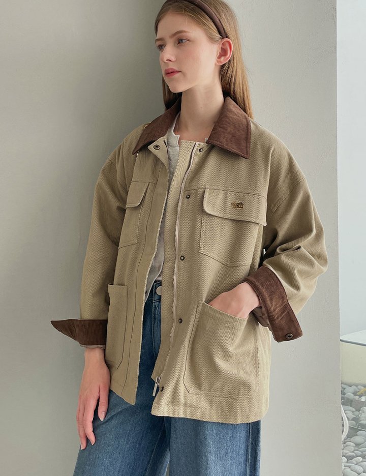 [슬로우롤리] 어반 유틸리티 워크 자켓 - 베이지