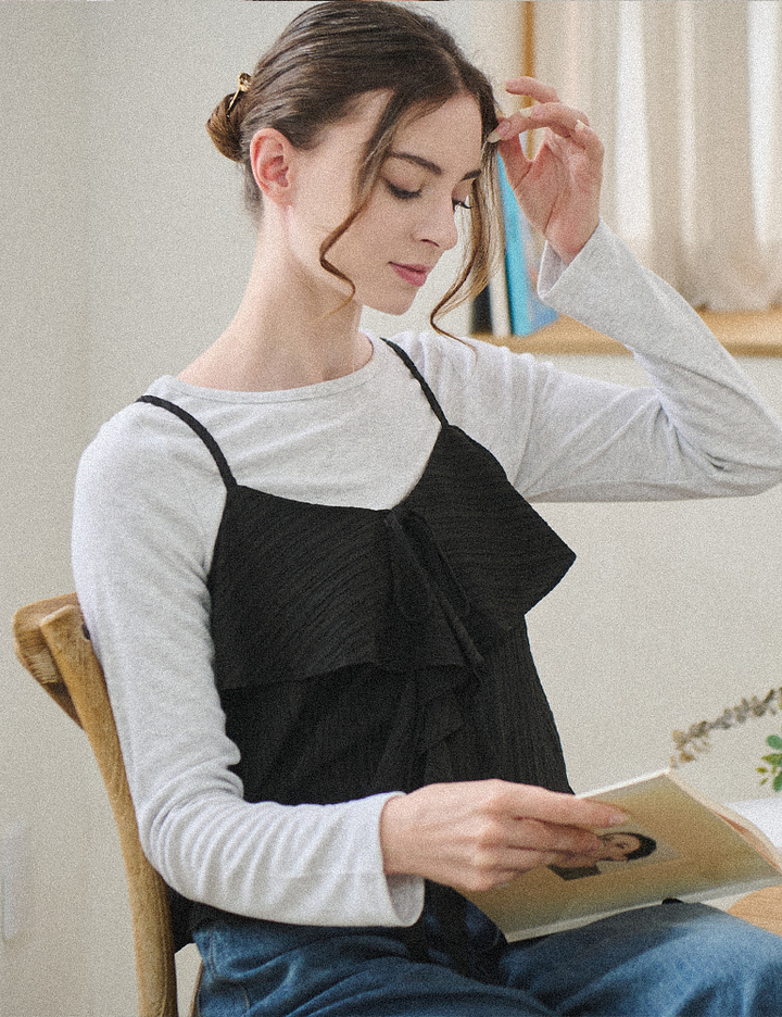 [슬로우롤리] 러플 타이 스트랩 슬리브리스 탑 2 colors (택 1)
