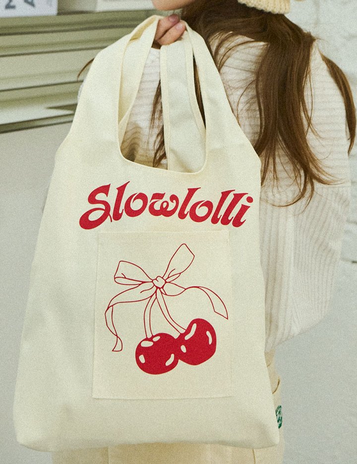 [슬로우롤리] 체리 프린티드 미니 백 - 베이지
