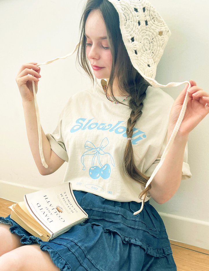 [슬로우롤리] 체리 프린티드 티셔츠 - 베이지