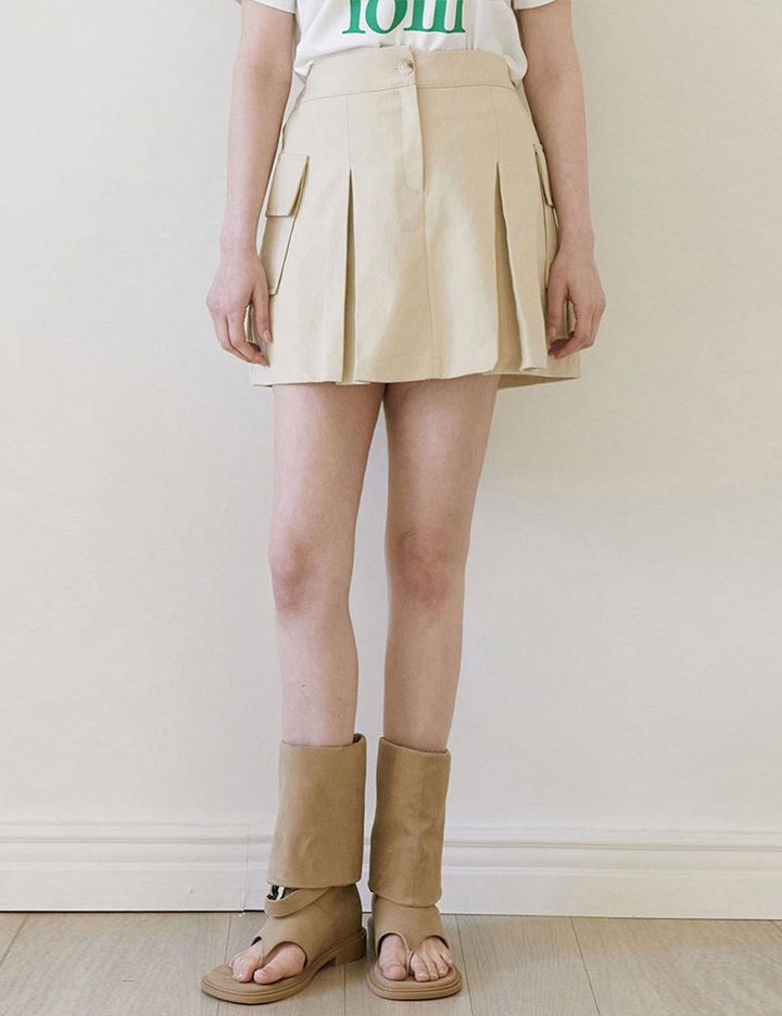 [슬로우롤리] 카고 미니 스커트 - 베이지