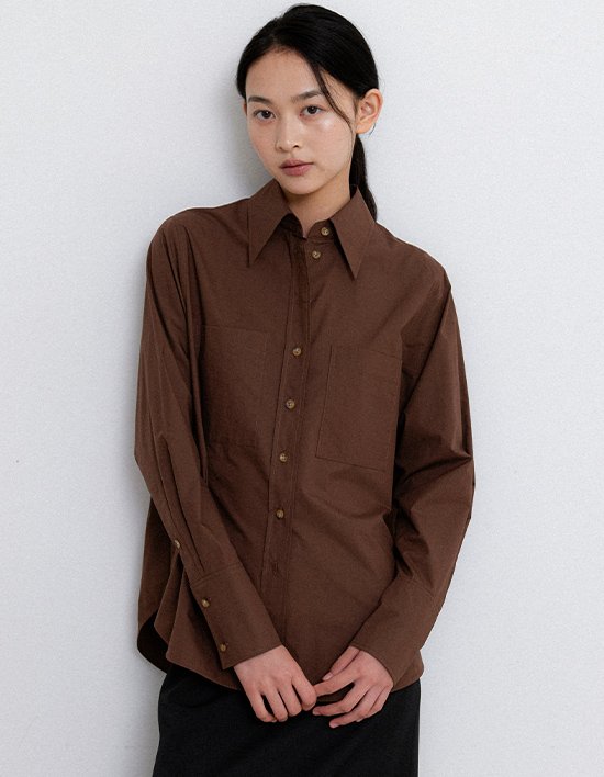 [미메메] 베이직 코튼 포켓 셔츠_브라운