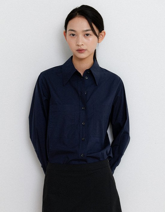 [미메메] 베이직 코튼 포켓 셔츠_네이비