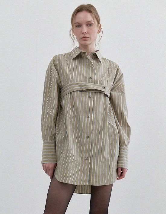 미니멀한 오버핏 기본 디자인에 뒷판 양 다트로 포인트 준 뷔스티에 셔츠.