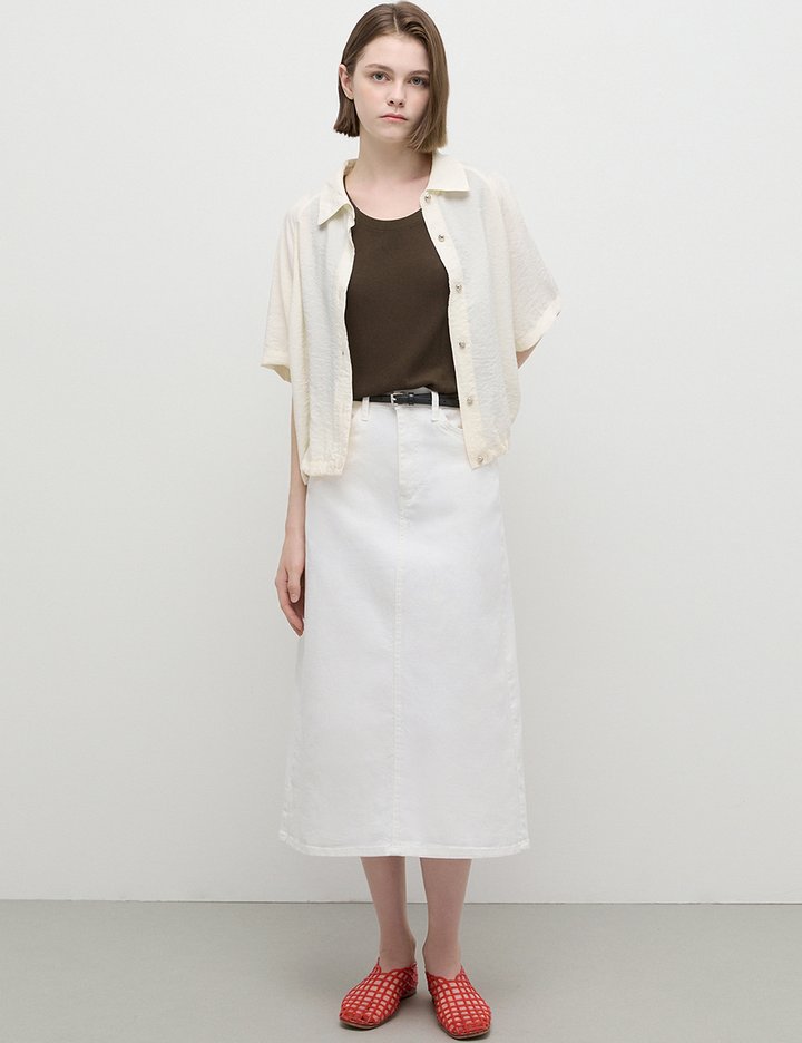 [쉬즈미스] 백 트임 A라인 데님 롱스커트_SAMSKP23010