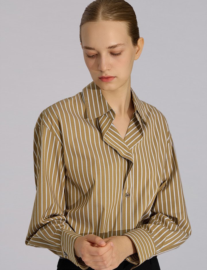 [쉬즈미스] 스트라이프 오픈 카라 셔츠_SWWSTO31090