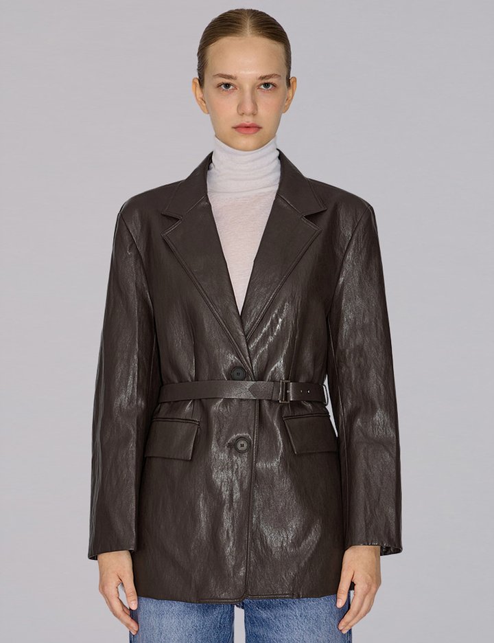 [쉬즈미스] 벨티드 투버튼 레더 자켓_SWWJKO32060