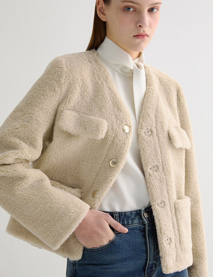 [쉬즈미스] 페이크 퍼 브이넥 자켓_SWUJKO42080