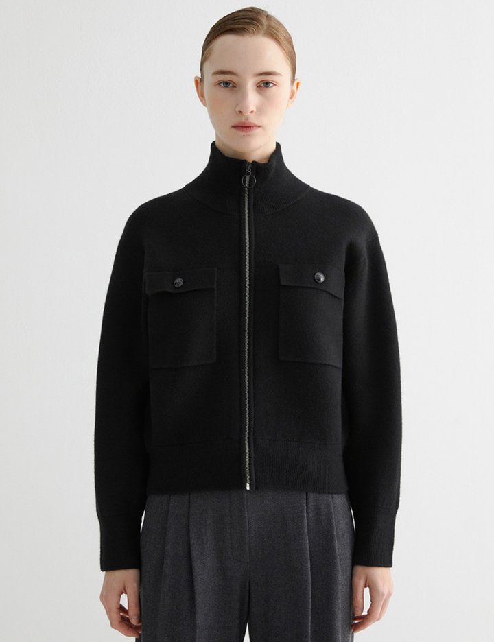 [쉬즈미스] 울 혼방 하이넥 니트 집업 가디건_SSKCDO42630