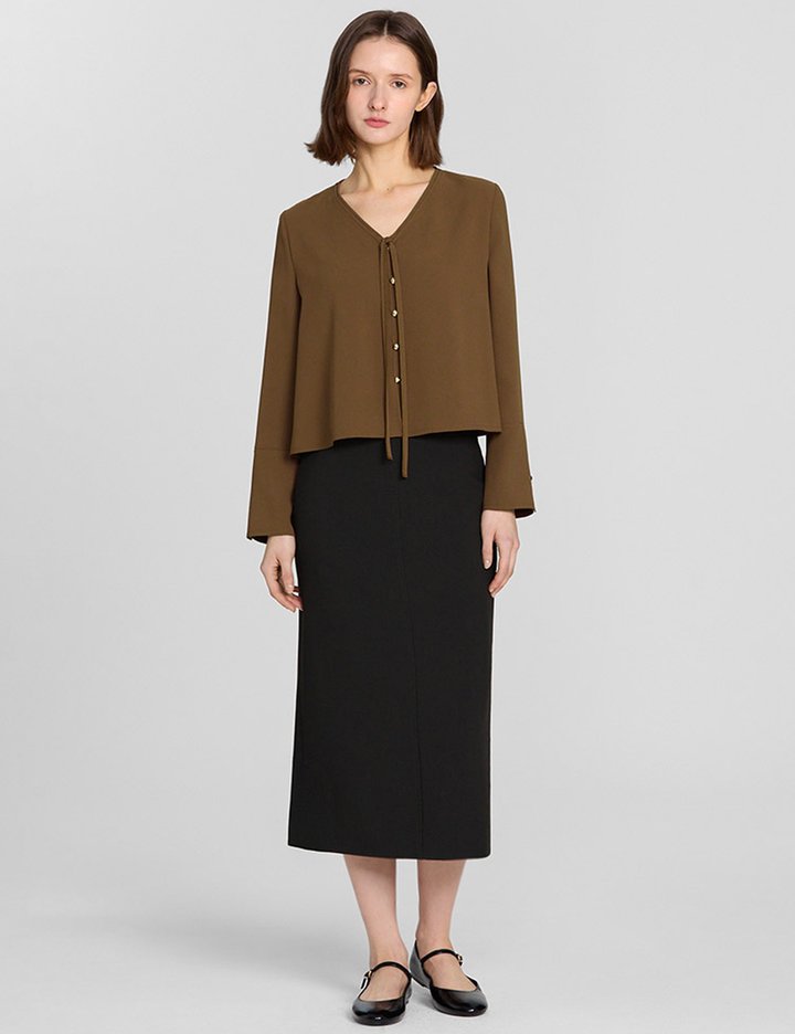 [쉬즈미스] 브이넥 타이 블라우스_SWWBLP11040