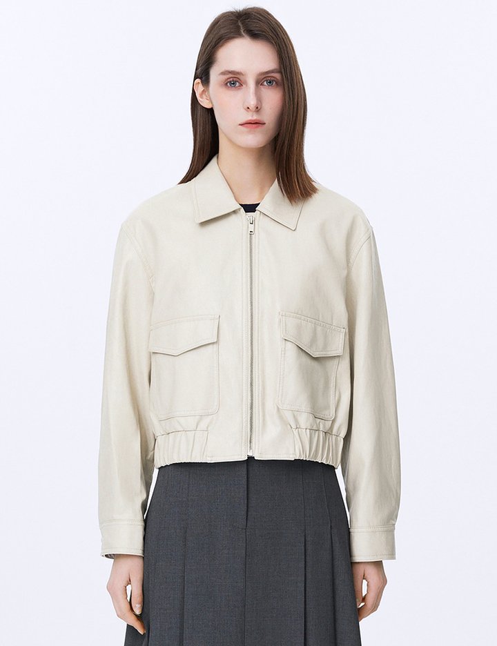 [쉬즈미스] 페이크 레더 밴딩 플랩 포켓 점퍼_SWWJPP12050