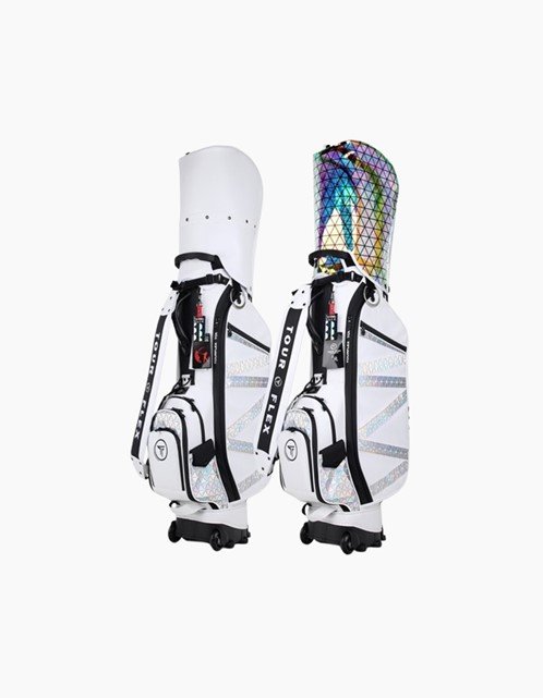 [로엔커머스] 투어 플렉스 핀크스 휠+스탠드 골프백 (화이트 프리즘)