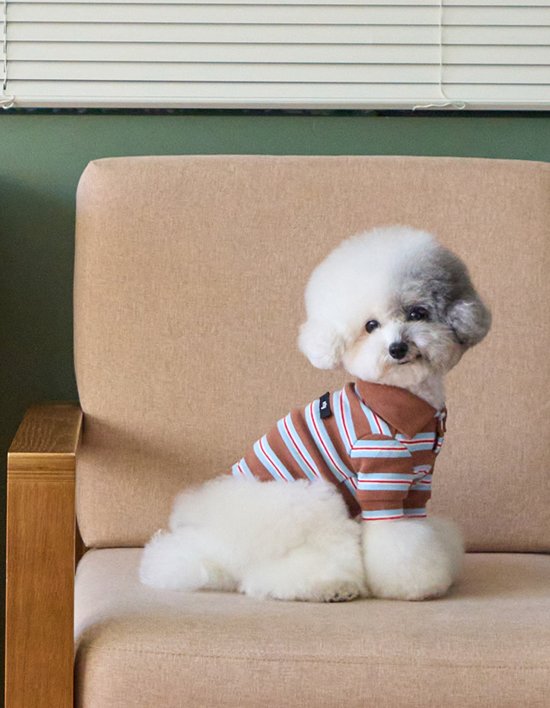 [위드토리] 멀티 스트라이프 스트링 폴로 티셔츠 (브라운)