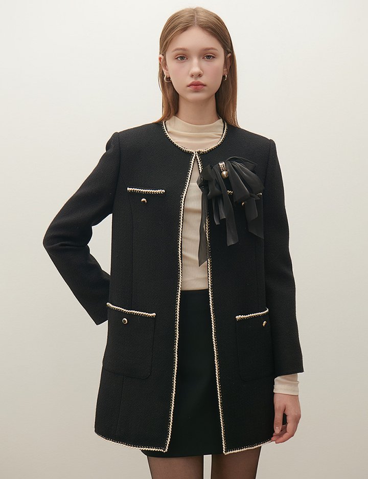 [샤틴] 브로치 장식 트위드 자켓 S254B105