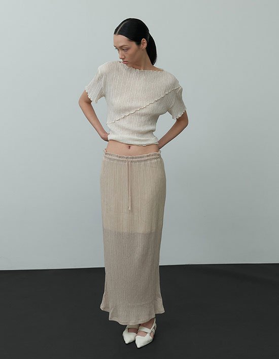[제이청] 시어 플리츠 스커트_베이지