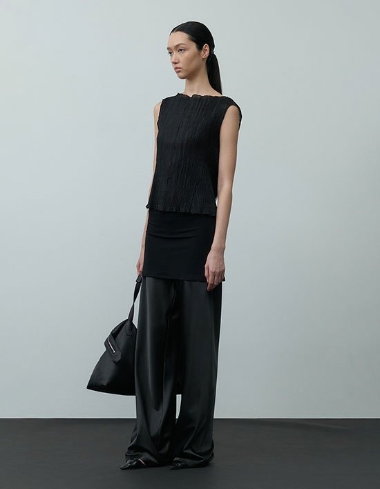 [제이청] 새틴 콤비 바이어스 트라우저_블랙
