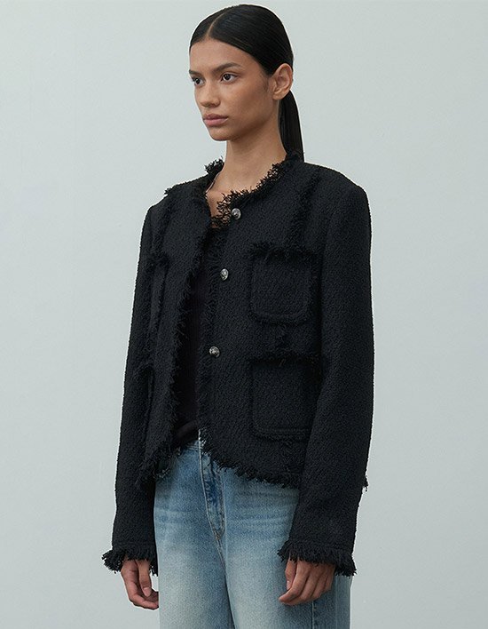 [제이청] 헤어리 트위드 자켓_블랙