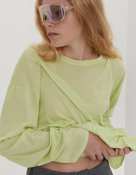 [제이청] 스컬프트 핀턱 오버사이즈 티_라임
