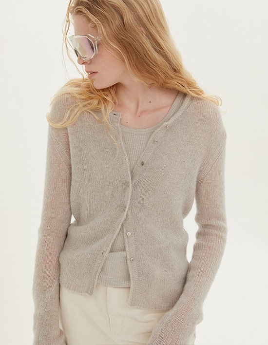 [제이청] 시어 버튼 업 가디건_라이트 그레이