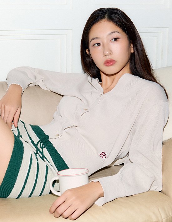 [비플랫베네통] 스프링 브이넥 니트 가디건 (Light Grey)