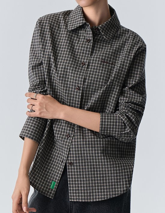 [비플랫베네통] 라운디드 카라 셔츠 (Multi)