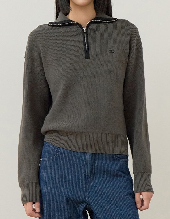 [비플랫베네통] 니트 하프넥 집업 (Dark Grey)