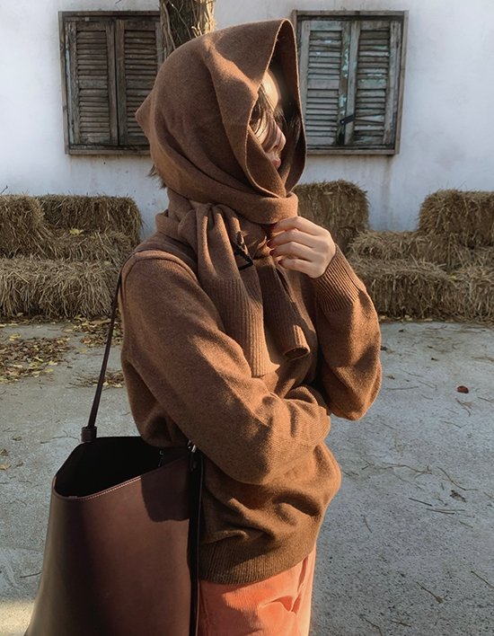 [비플랫베네통] (헤이가가 PICK)캐시미어 라운드 컬러 니트 (Brown)