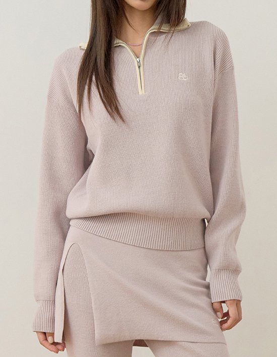 [비플랫베네통] 니트 하프넥 집업 (Light Violet)