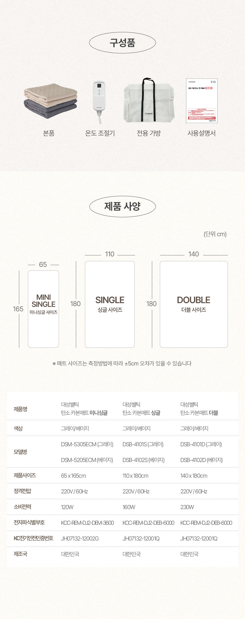 [대성쎌틱] 그래핀 탄소 카본매트 베이지/그레이 3종