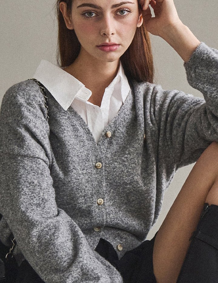 [슬로우롤리] 어반 코지 버튼 가디건 - 그레이