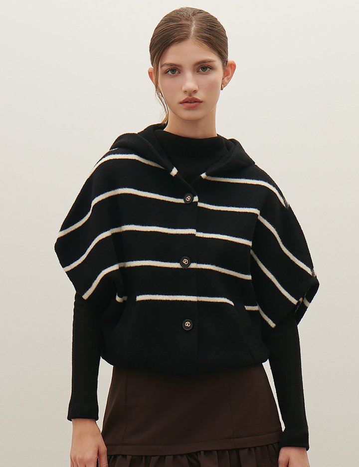 [샤틴] 스트라이프 후드 버튼 니트 O254T974