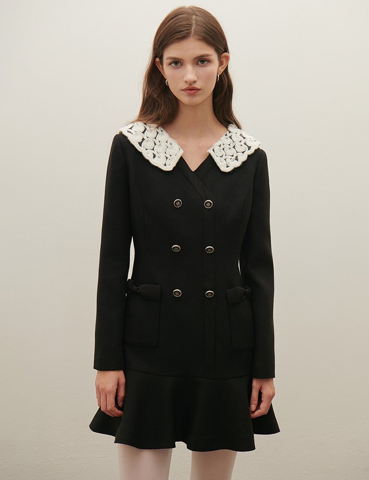 [샤틴] 니트 탈부착 카라 원피스 O254T607