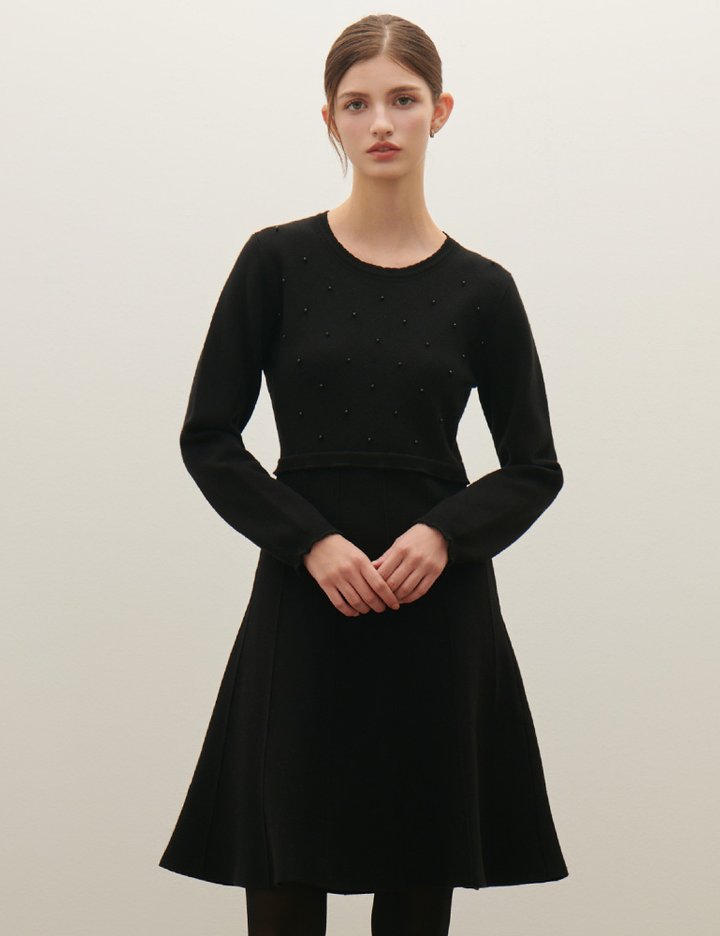 [샤틴] 진주장식 플레어 니트 원피스 O254T931
