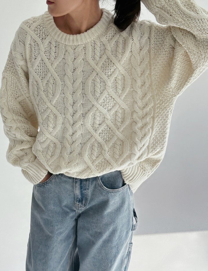[바이듀] 트위스트 루즈 니트 탑 (아이보리)