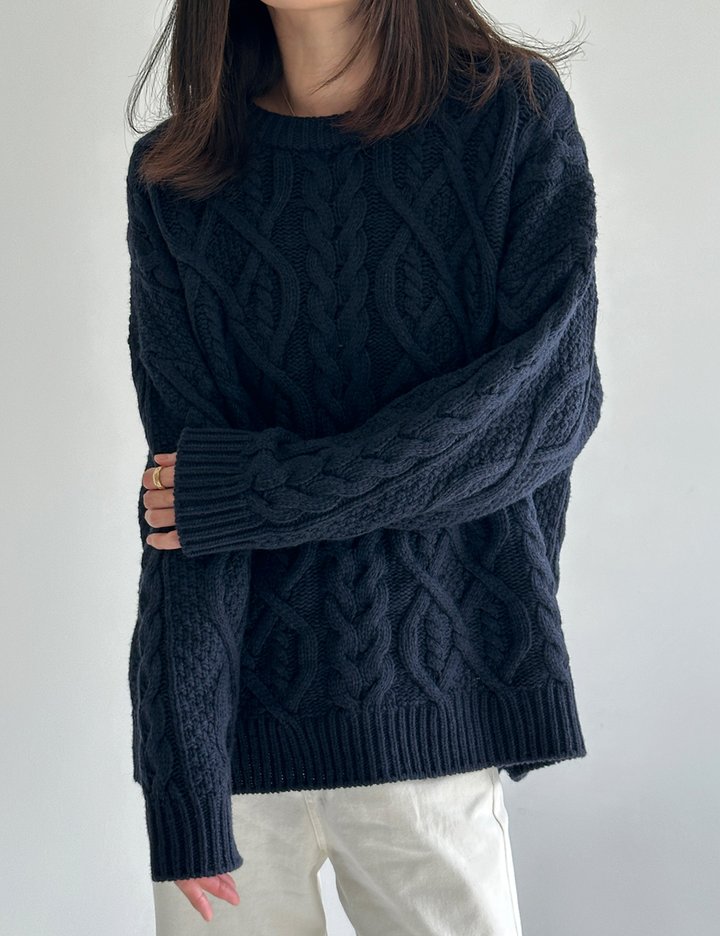 [바이듀] 트위스트 루즈 니트 탑(네이비)
