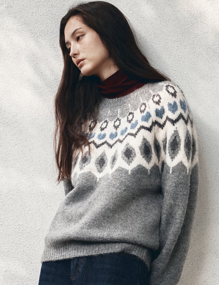 [반원 아틀리에] 래글런 자카드 니트_그레이(KN4277)