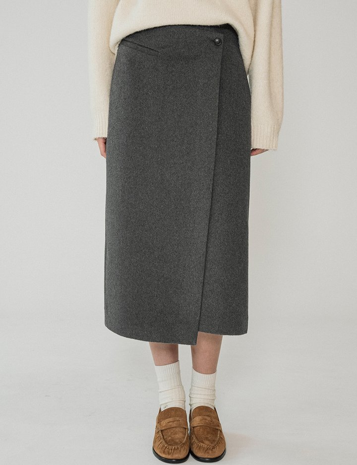 [반원 아틀리에] 울 블렌드 랩 스커트_차콜(P3276)