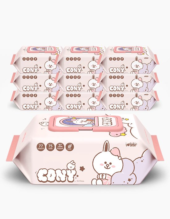 [아이러브베베] 라인프렌즈 드림에디션 코니 75g 생분해원단 77매 10팩 캡형 아기물티슈
