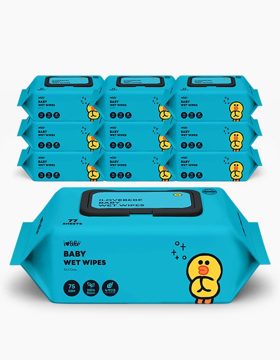 [아이러브베베] 라인프렌즈 샐리 75g 생분해원단 77매 10팩 캡형 아기물티슈