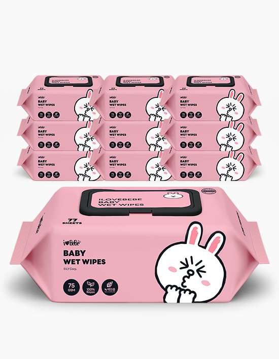 [아이러브베베] 라인프렌즈 코니 75g 생분해원단 77매 10팩 캡형 아기물티슈