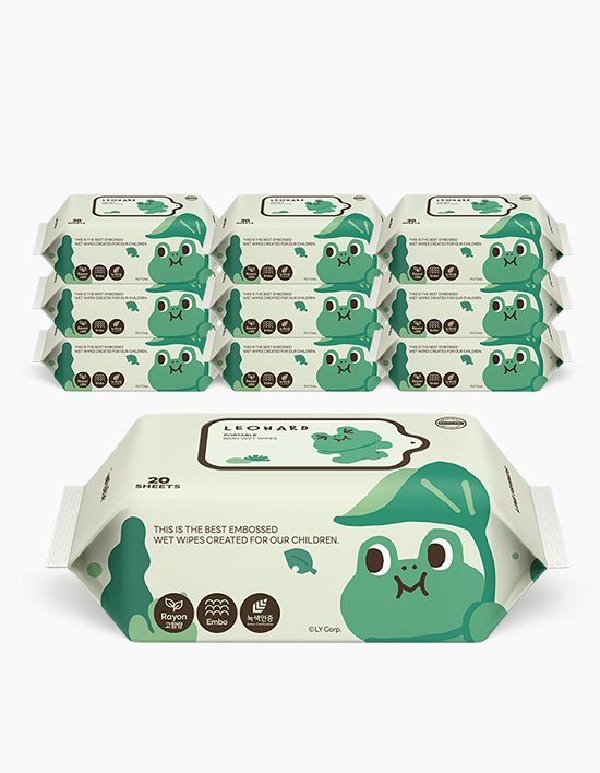 [아이러브베베] 라인프렌즈 미니레너드 20매 휴대용 10팩 리필형 아기물티슈